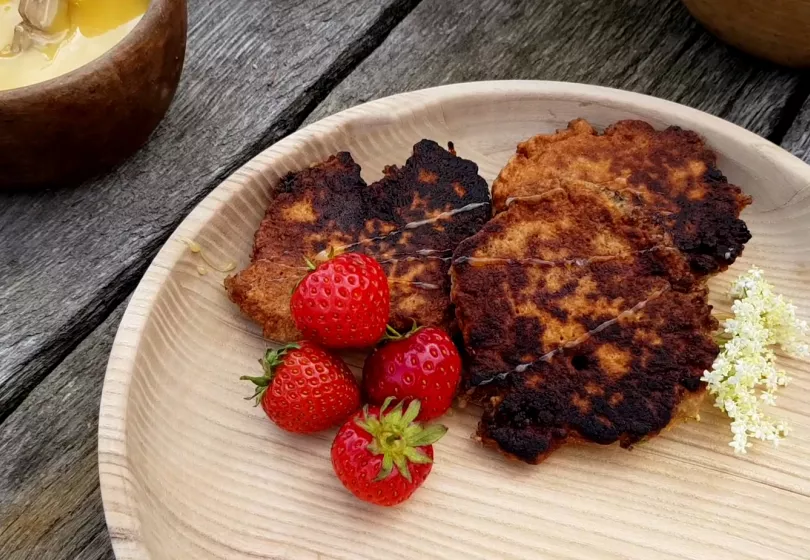 Serve the elderflower pancakes with honey and e.g. fresh berries.