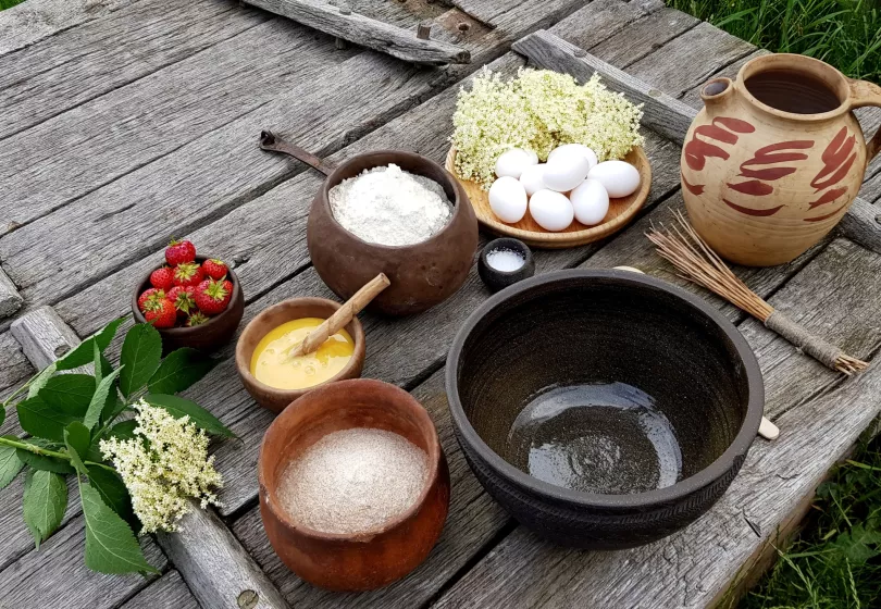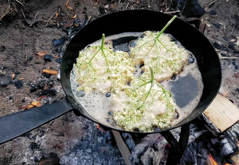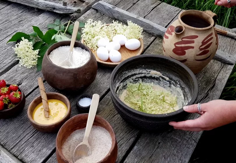 This is a recipe for a delicious dessert hardly anyone can refuse (about 8 cakes). Pick your elderflowers in the morning as the dew keeps the aroma well. Don't wash them, but give them a shake to remove any dirt.