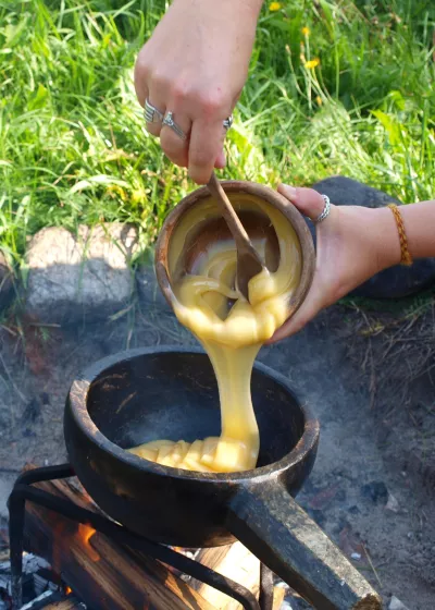 Making jam is one way of preserving fruit and berries, but jam and marmalade are actually quite a modern invention that came with the spread of the cast-iron stove. The Vikings could use precious honey when preserving fruit and berries for the winter, and here is an example of hip berry honey, which is delicious with pancakes, on a slice of bread or in tea.