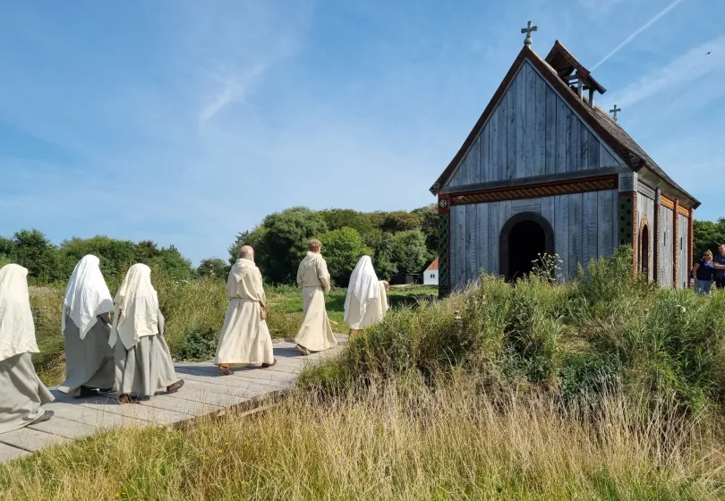 Even though there is no actual finds of Ansgar church, there still is sufficient general knowledge of church building in the 9th century for Ribe VikingeCenter to make a qualified reconstruction of Ansgar Church, 860 AD.