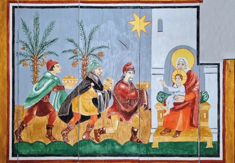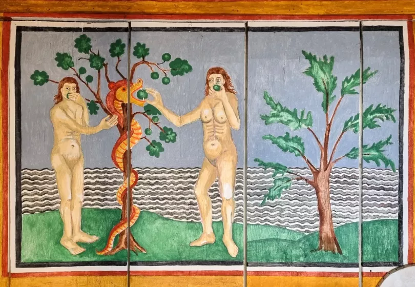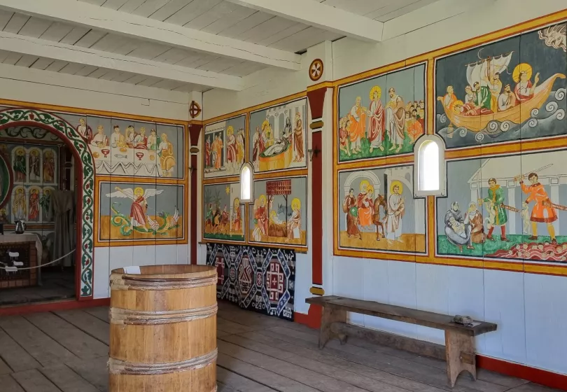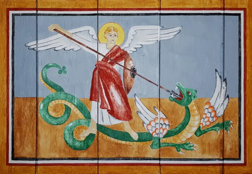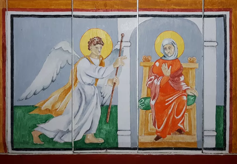 Even at that time, the visualization of the Bible stories was regarded as essential to the success of the Christian message. As we aim to create a typical 9th century church interior, we have had 50 Carolingian style scenes from the Bible painted on the walls of the Ansgar Church.