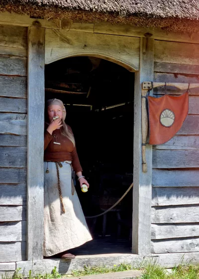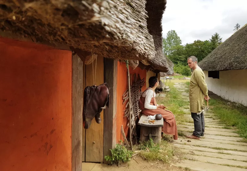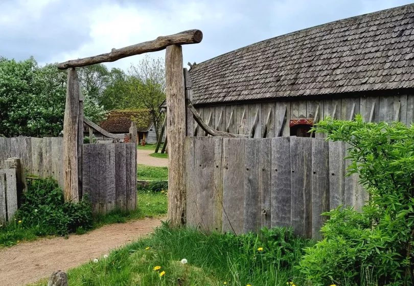 Join a guided walk through the Marketplace and Ripa Harbour from the years 710–750, representing the very earliest Ripa with its shopping street and workshops. Moored at the jetty are clinker-built boats used to transport goods along the river between the town and the Wadden Sea. In Ripa Town, year 825, you will get a sense of how the houses, gardens and street layout may have looked, and on the other side of the river you will spot the Ansgar Church from the year 860, a reconstruction of what the first Christian church in Ripa may have looked like. At the Hviding Farm, year 980, you can experience Viking Age farming and livestock including Icelandic horses, cattle, hens, sheep and pigs. Along the way, there are plenty of opportunities to ask questions.