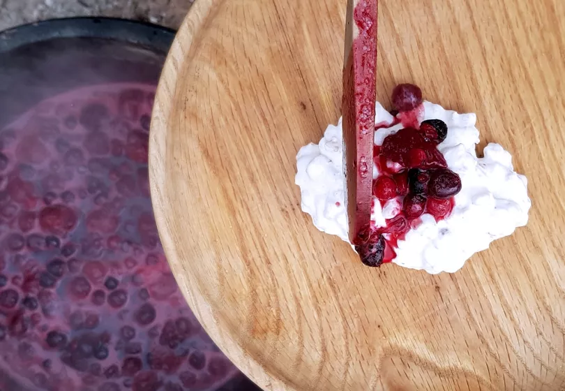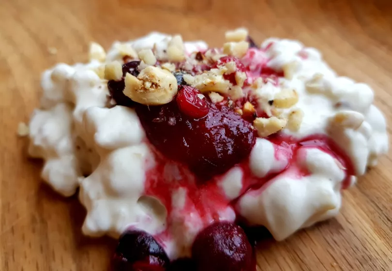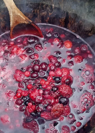Put the berries in a pot and add a splash of water. Let them simmer for about 5 minutes until soft and beginning to burst. Add honey or sugar for sweetness. Adjust to taste and leave the fruit compote to cool.