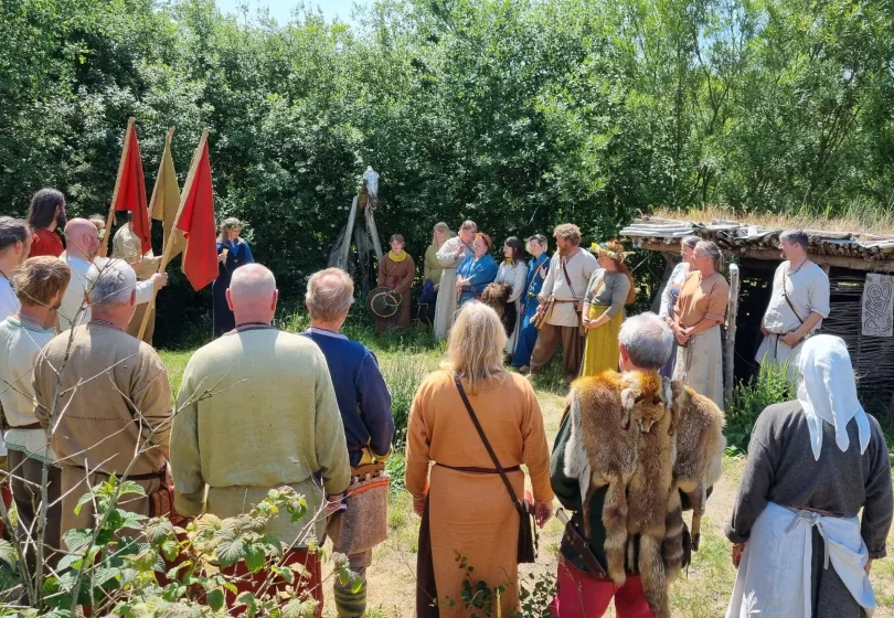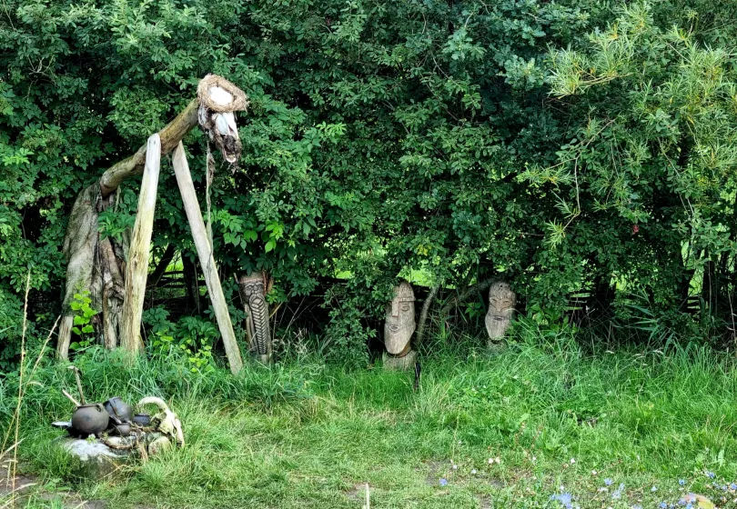The völva lives in a small wooden house on the edge of the sacrificial bog. She knows about the gods, she knows about herbs, she knows about healing. With the help of song she can enter a trance and give answers to questions about the future. With her runes she can give advice.