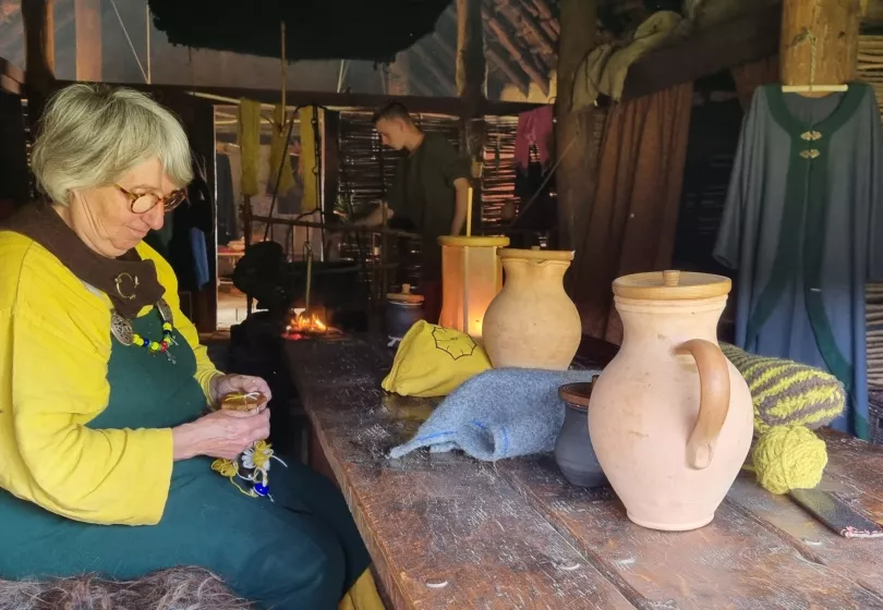 One group of volunteers is the reenactors. They usually join us as groups of both adults and children, they have their own Viking equipment and master one or more Viking crafts. The reenactors are an active part of the interpretation while staying with us.