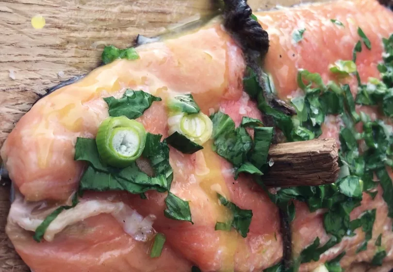 I denne opskrift anvender vi laks, ramsløg og forårsløg, men man kan nemt udskifte ingredienserne med andre kødtyper og krydderier. Fladfisk med frisk timian, makrel med sar og tangsalt eller kylling med merian er bare tre eksempler på gode plankeretter.